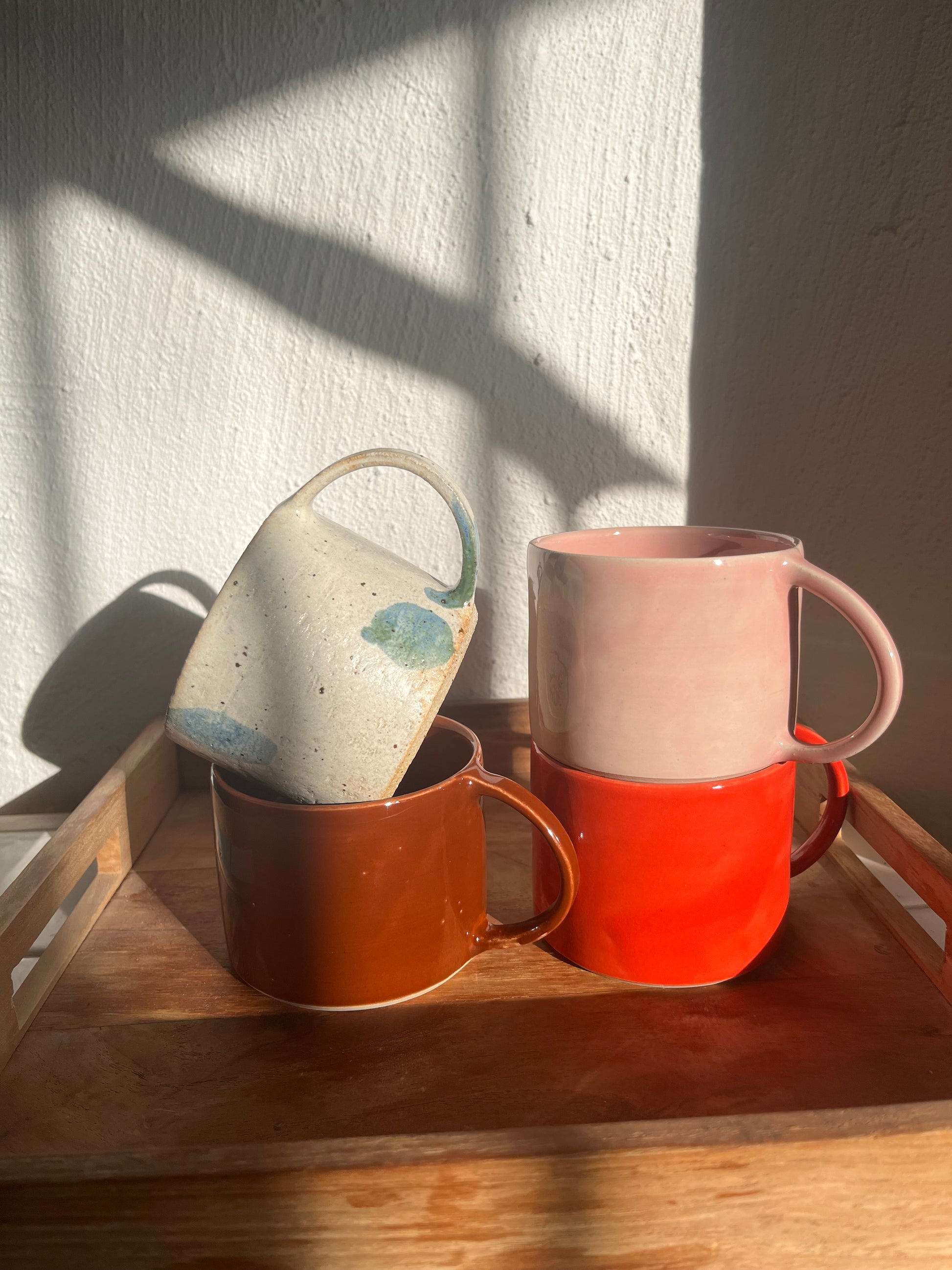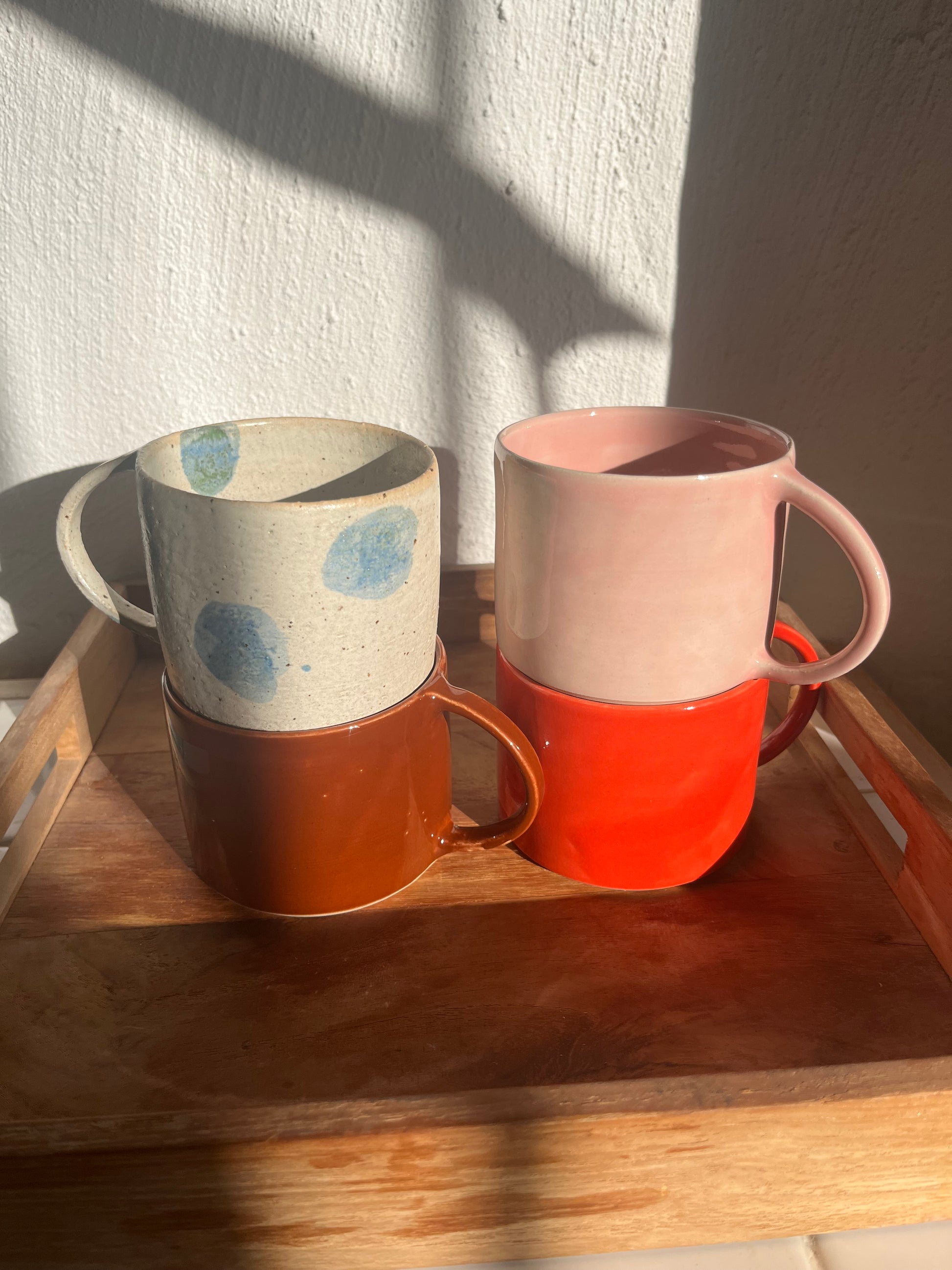 Some of the cups will have a darker more light brown colour on the inside so to the nature of the glaze. This is part of the charm.