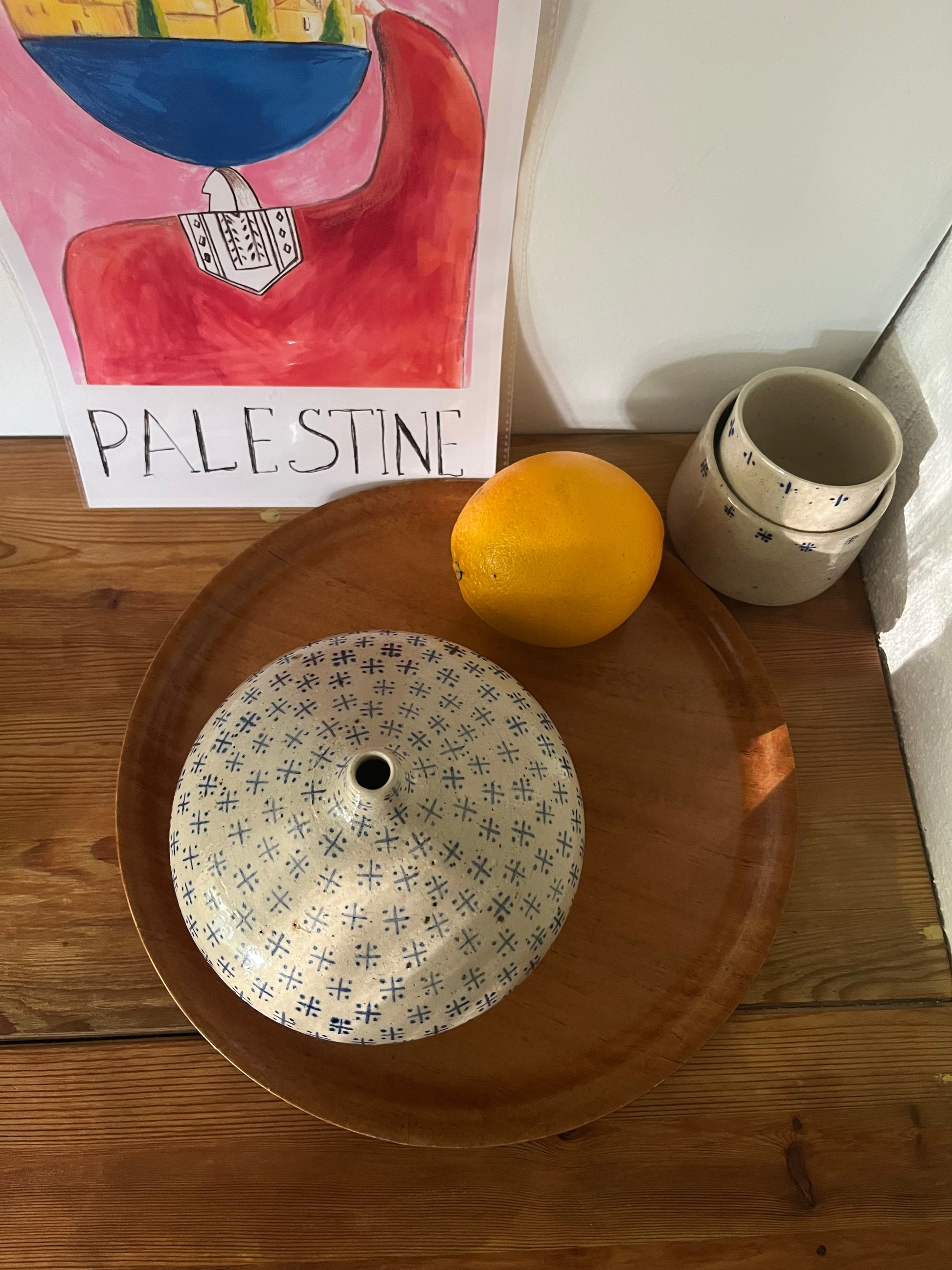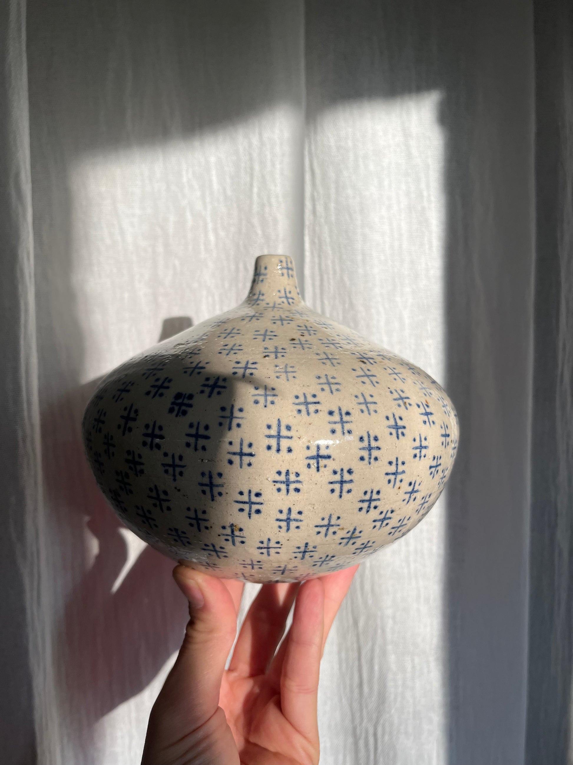 Stoneware vase with narrow neck. The vase is covered in my favourite deq symbol that holds protective power.