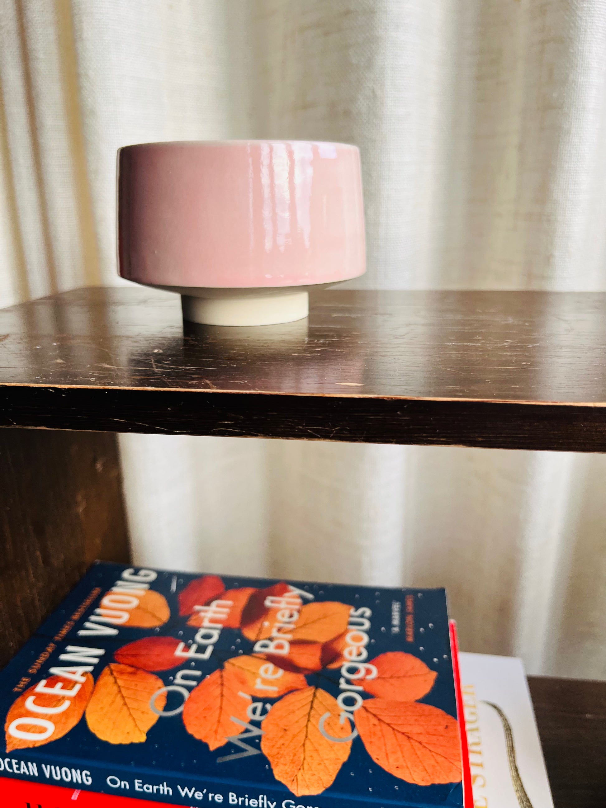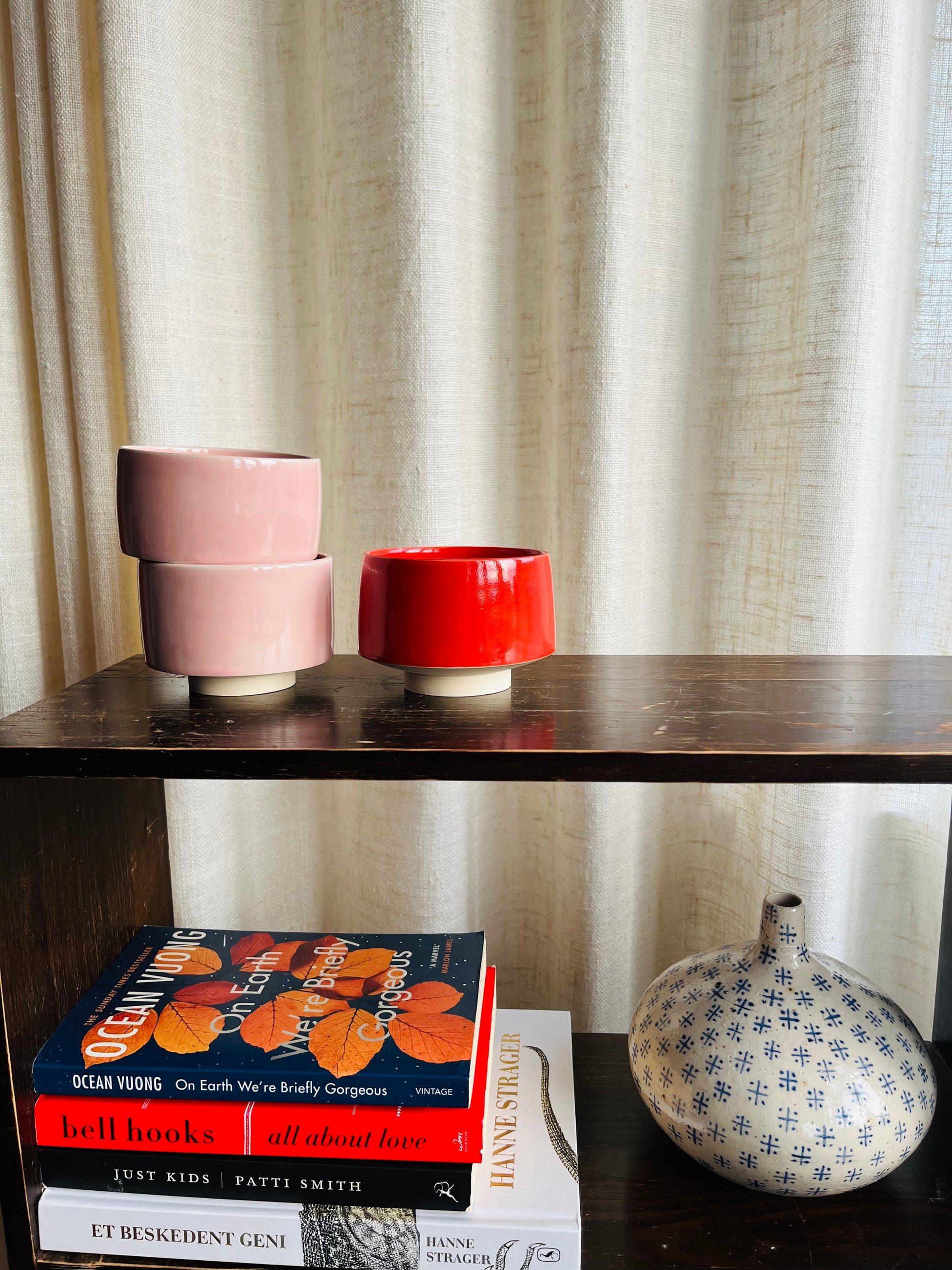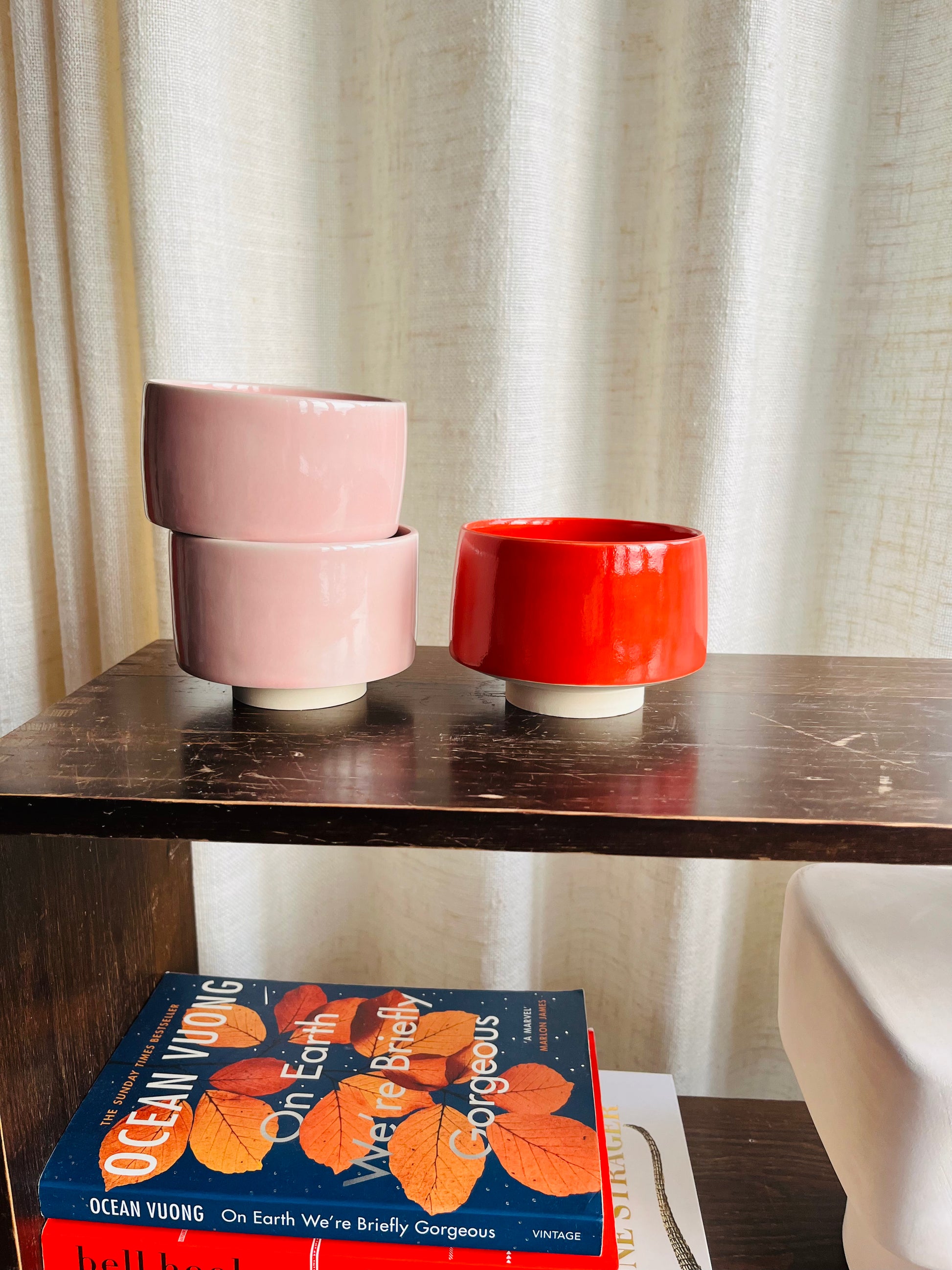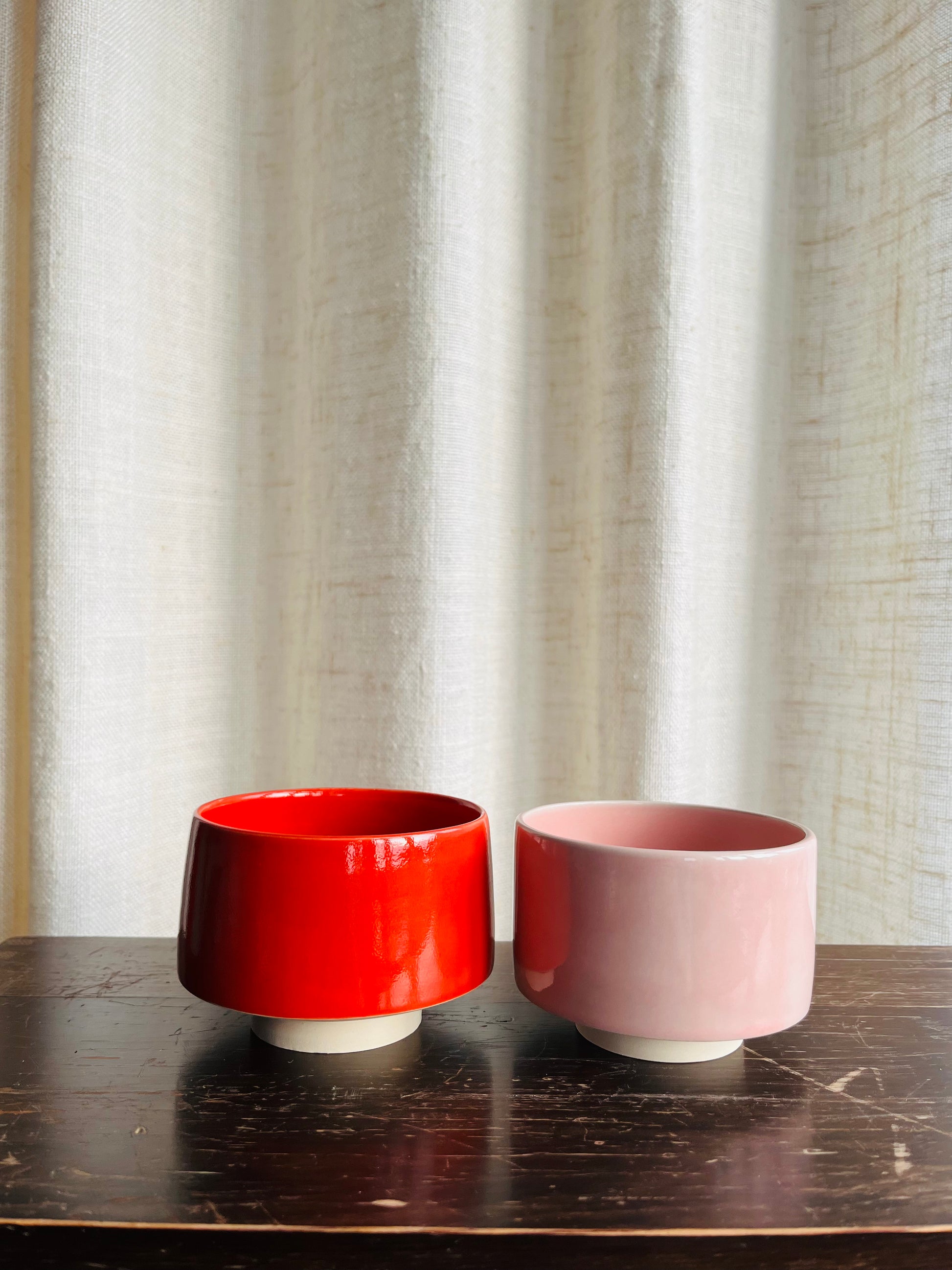 Elegant pink stoneware cup without a handle. Also available in red.