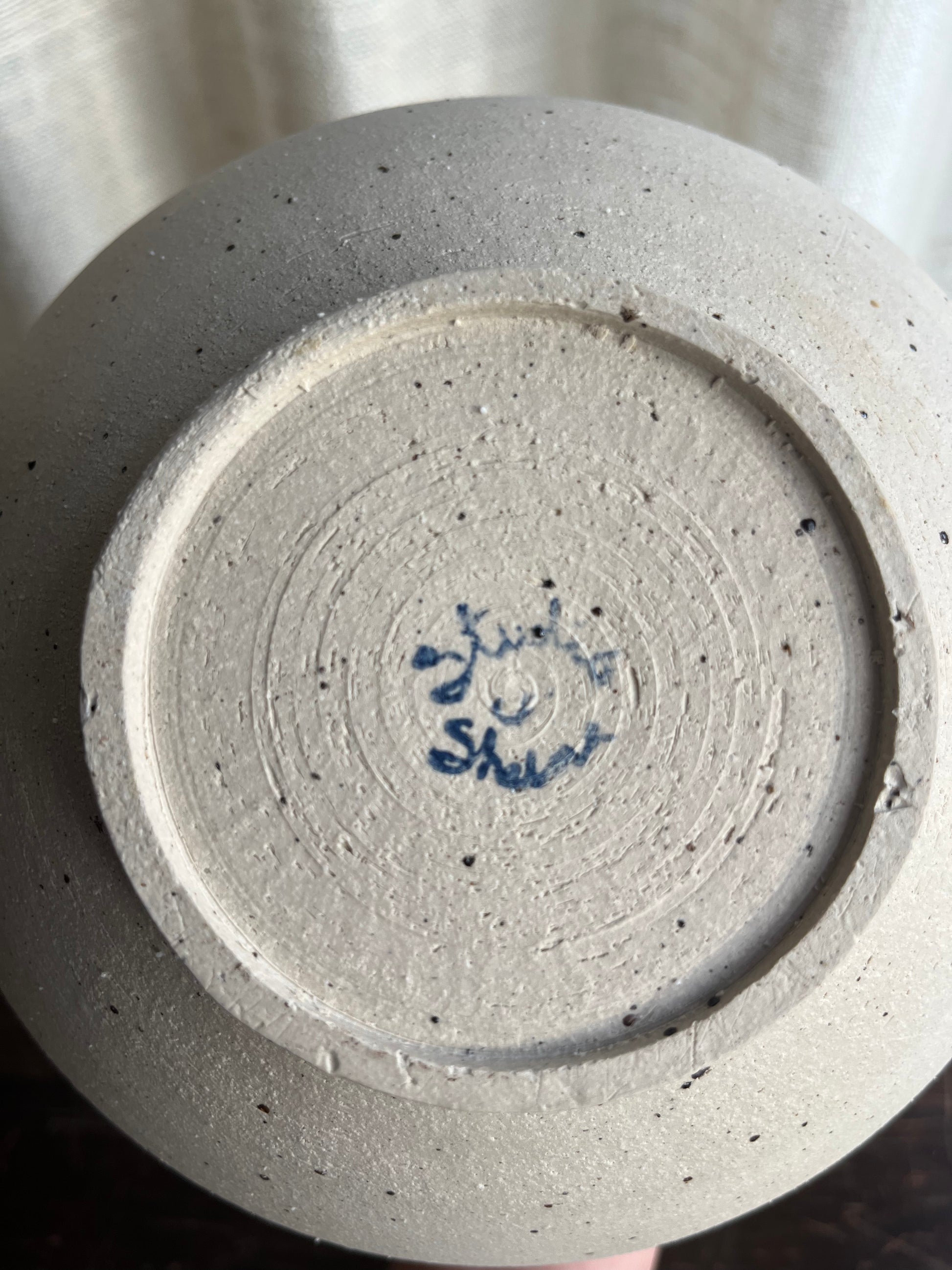Simple stoneware vase that is unglazed on the outside. On the inside it’s glazed with a clear glaze.